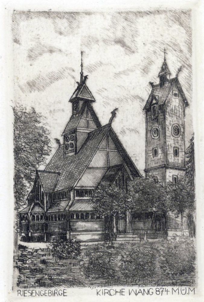 Przełomowym momentem w dziejach rozwoju wsi było wzniesienie tutaj za pieniądze króla Prus Fryderyka Wilhelma IV drewnianego kościółka sprowadzonego z Norwegii. 28 lipca 1844 kościółek został uroczyście poświęcony i zaczęła od tej pory działać tam ewangelicka parafia. Świątynia Wang jak bardzo szybko zaczęto ją nazywać, stała się główną atrakcją dla odwiedzających Karpacz Górny turystów, a także natchnieniem dla wielu poetów, malarzy i artystów. Oto jak utrwalił ten obiekt w swoim wierszowanym opisie podróży przez Śląsk B. Z. Stęczyński: